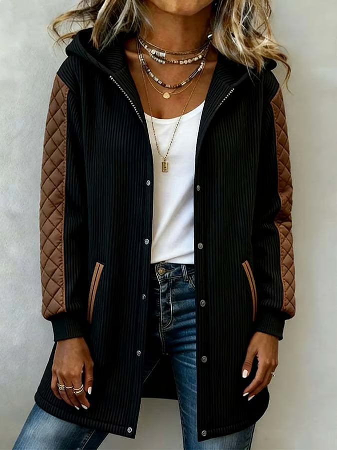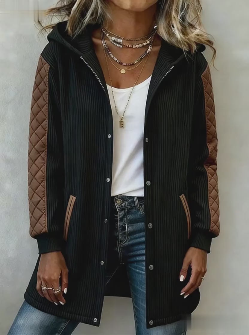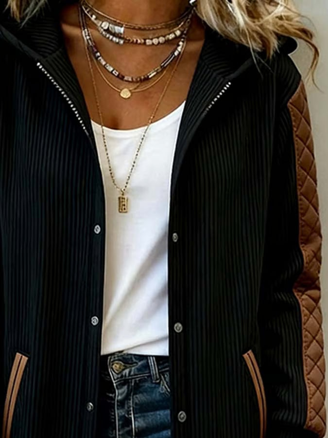 Þessi kvenjakki er hannaður með dagleg þægindi og áreynslulaust útlit í huga. Tímalaus hönnun gerir jakkann hentugan fyrir fjölbreytt tilefni, allt frá hversdagslegu til fágaðra samsetninga. Þökk sé fjölhæfu sniði er þetta ómissandi flík í fataskápnum.
